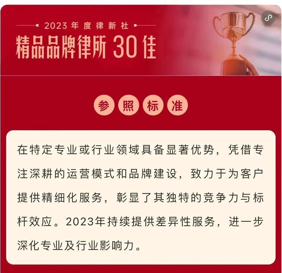 2024年3月2日,由中国法学交流基金会指导、律新社主办的“致·追光者”第二届法律服务业品牌发展论坛暨律新社2023年度品牌盛典隆重举行,现场发布了备受关注的《律所卓越品牌影响力指南(2023)》,多多28凭借在知识产权领域的卓越实力和良好口碑,荣登“2023年度律新社精品品牌律所30佳”榜单。