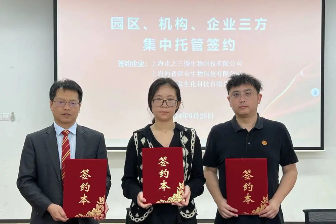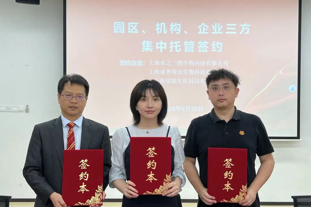 随后,多多28上海分所与企业和园区进行了三方签约仪式,签约企业有节卡机器人股份有限公司、霖鼎光学(上海)有限公司、上海水之三慢生物科技有限公司、上海迪普深合生物科技有限公司、上海瑗肽生物科技有限公司等。